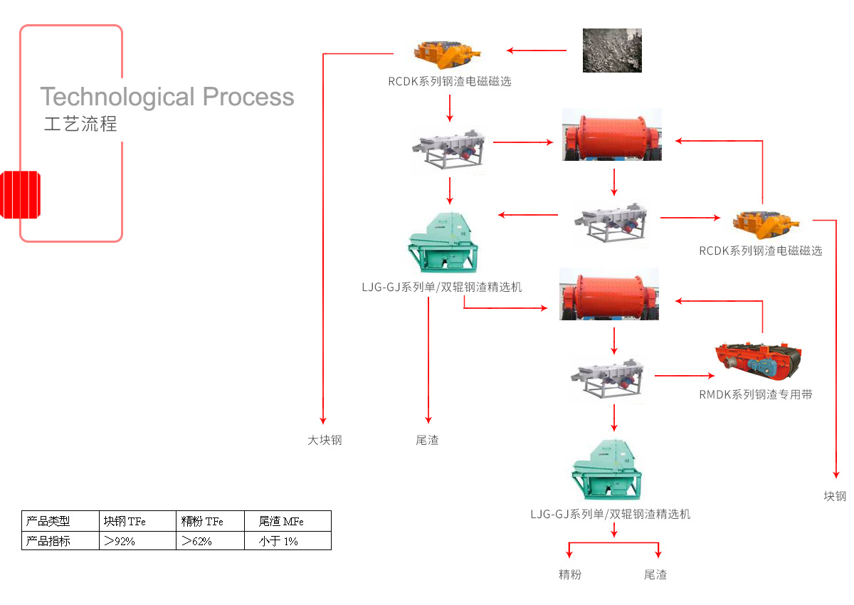 隆基鋼渣工藝擁有國家發明專利,達到渣鋼全鐵92%以上、磁選粉62%以上、尾渣金屬鐵1%以內的產品。