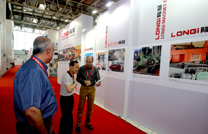 這是冶金行業(yè)內(nèi)世界第二大展覽會(huì),每?jī)赡昱e辦一次。來(lái)自德國(guó)、意大利、西班牙、美國(guó)、中國(guó)臺(tái)灣等國(guó)內(nèi)外近兩千家企業(yè)參展,展會(huì)規(guī)模為繼德國(guó)杜塞爾多夫冶金、鑄造展之后本領(lǐng)域內(nèi)全球第二大展會(huì)。此外,國(guó)內(nèi)知名的大型鋼企如:包鋼、鞍鋼、首鋼、武鋼、太鋼、中鋼設(shè)備、東北特鋼等都到場(chǎng)參展,這些大型鋼鐵集團(tuán)同時(shí)也是隆基的合作伙伴。隆基在展會(huì)上現(xiàn)場(chǎng)演示了鋼渣帶磁機(jī)及全自動(dòng)永磁起重器,鋼渣、水渣產(chǎn)品展柜吸引了大批專業(yè)觀眾前來(lái)咨詢,行業(yè)產(chǎn)品規(guī)劃及現(xiàn)場(chǎng)案例讓觀眾們了解到隆基產(chǎn)品的現(xiàn)場(chǎng)實(shí)際應(yīng)用情況,工作人員與眾多冶金行業(yè)客戶進(jìn)行了深入交流,得到用戶的一致好評(píng)。