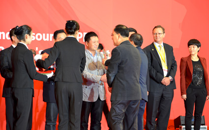 10月22日晚,中國國際礦業(yè)大會(huì)最佳貢獻(xiàn)獎(jiǎng)揭曉,沈陽隆基電磁科技股份有限公司等34家單位分獲最佳贊助獎(jiǎng)、最佳展覽獎(jiǎng)、最佳參會(huì)獎(jiǎng)和最佳服務(wù)獎(jiǎng)。中國國土資源部副部長汪民、天津市副市長尹海林、中國地質(zhì)調(diào)查局局長鐘自然為獲獎(jiǎng)?wù)哳C獎(jiǎng),隆基副總經(jīng)理李朝朋代表公司上臺領(lǐng)獎(jiǎng),
