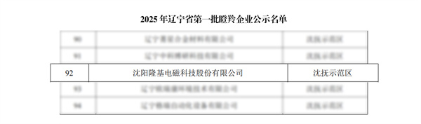 近日,遼寧省科學(xué)技術(shù)廳正式公布《2025年遼寧省第一批擬備案雛鷹瞪羚獨(dú)角獸企業(yè)名單》,沈陽(yáng)隆基憑借持續(xù)創(chuàng)新能力、高速成長(zhǎng)態(tài)勢(shì)及前瞻戰(zhàn)略布局,成功入選“瞪羚企業(yè)”。